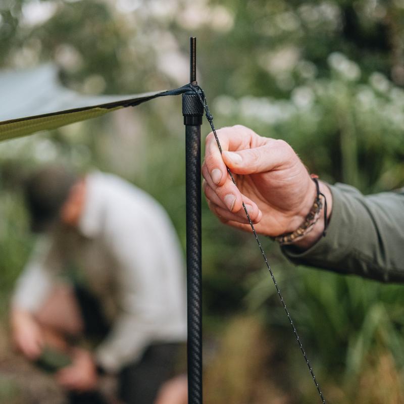 - Premium Dyneema® & Paracord Hardware – Unlike standard tarps, this kit includes elite-level rigging: an 11M 550 Paracord ridgeline, four 2.5M Dyneema® Hardcord guylines with micro line locks, and two Dyneema® Prusiks. These high-strength, low-stretch cords provide rock-solid tension even in high winds.